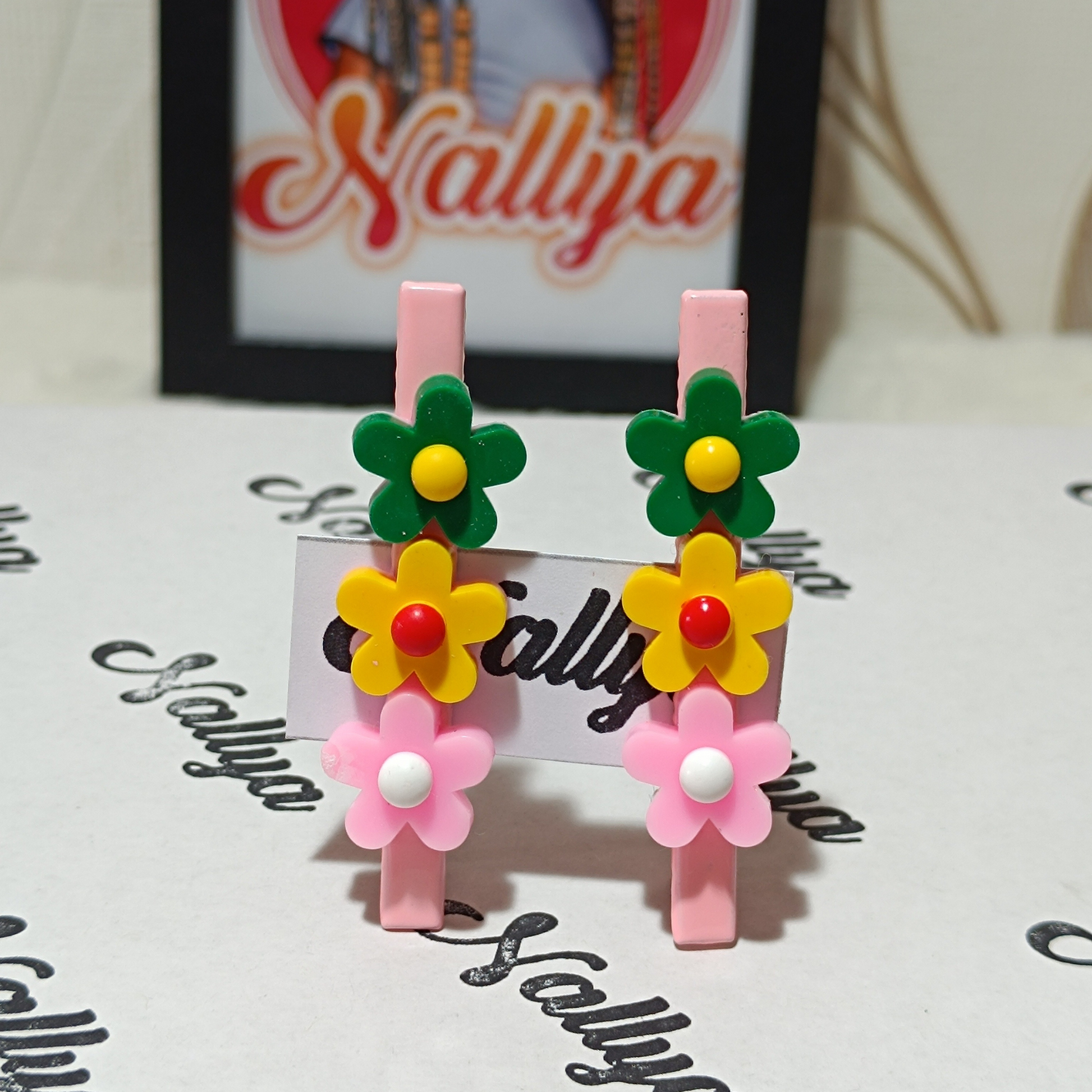 1 paire de barrettes rose fleurs