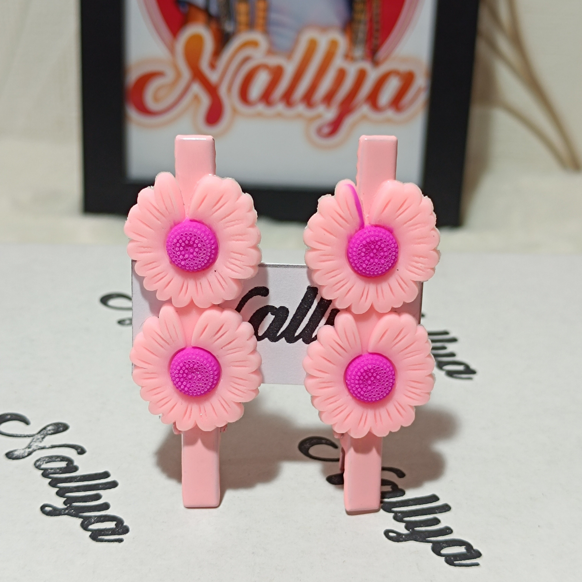 1 paire de barrettes rose fleurs