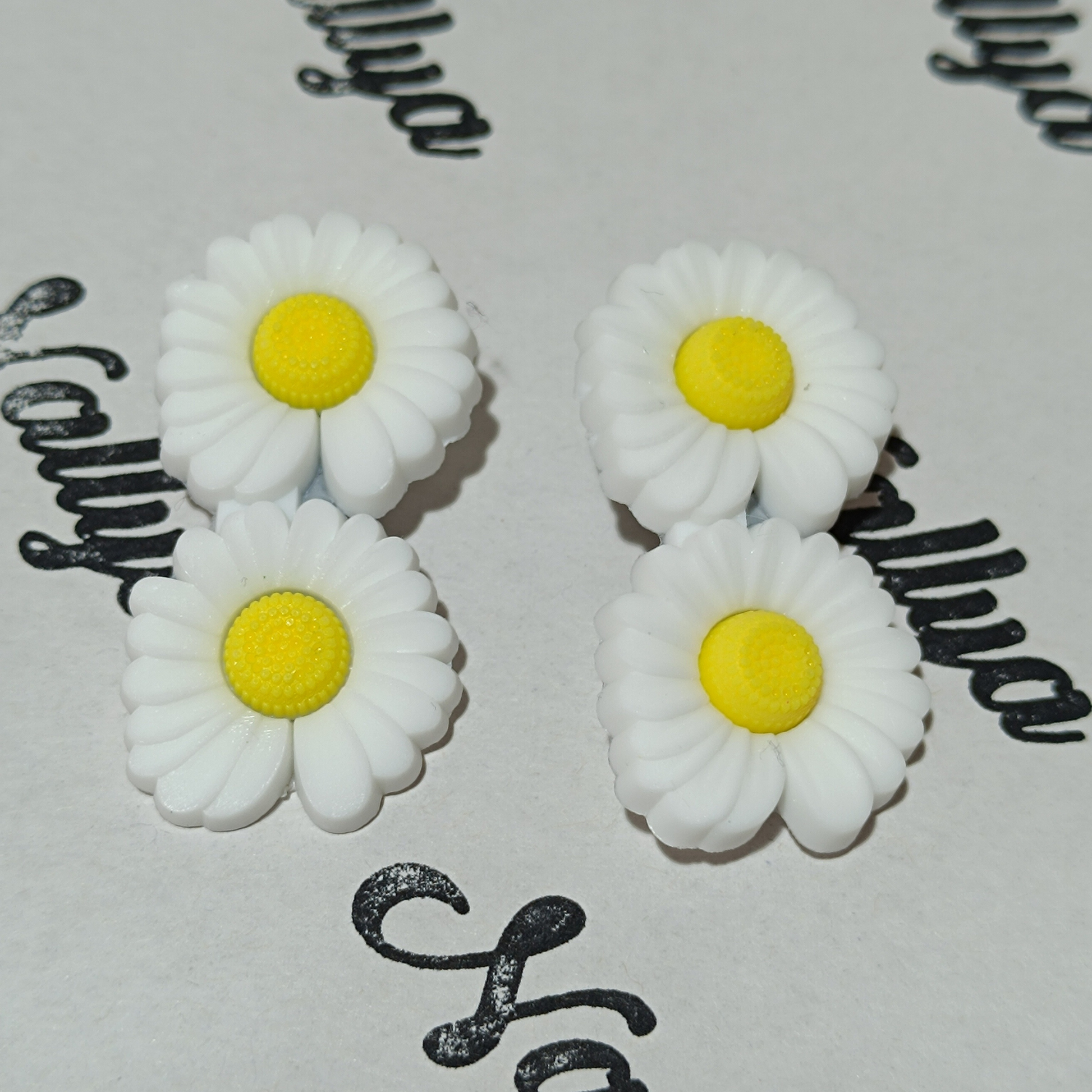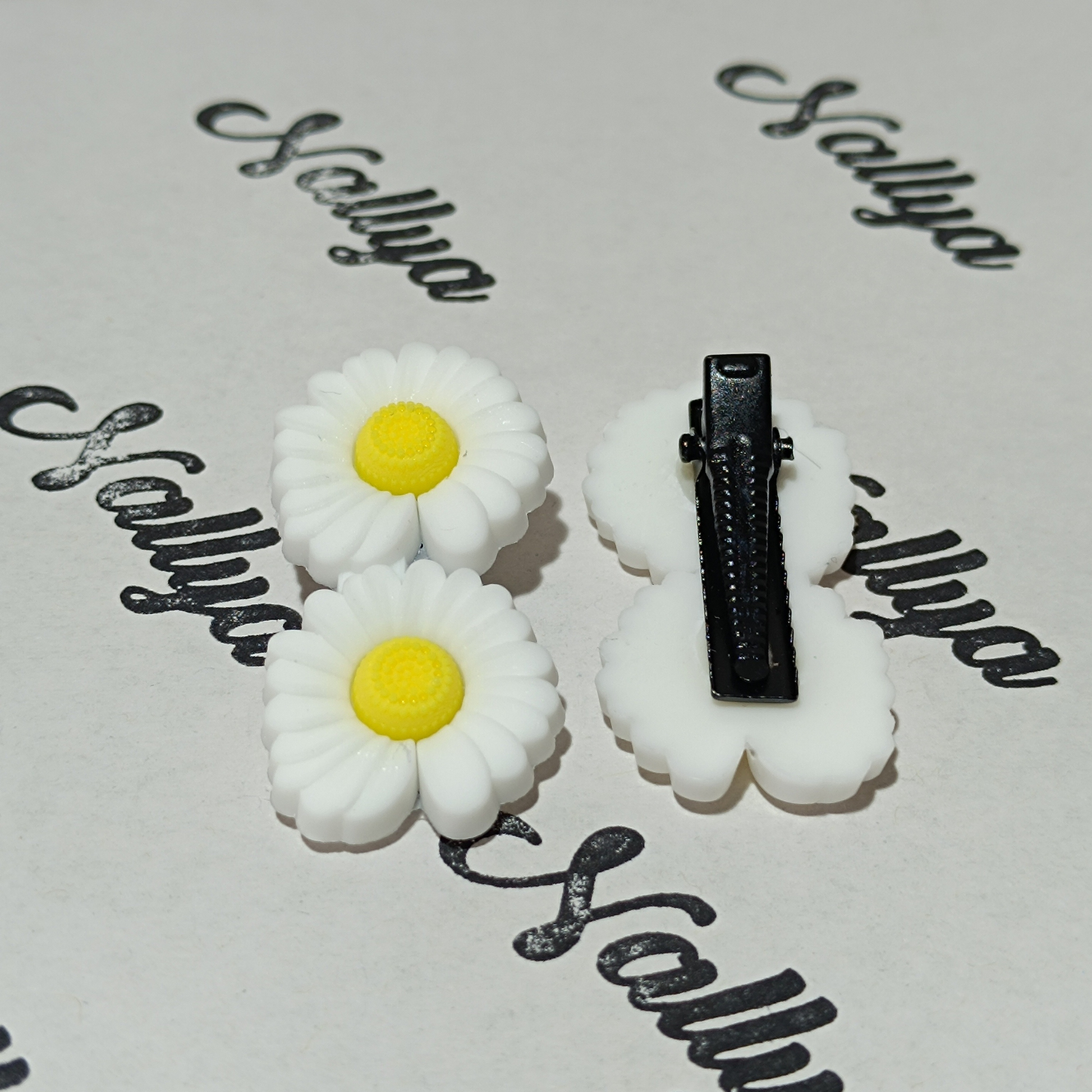 1 paire de barrettes jaune fleurs blanche