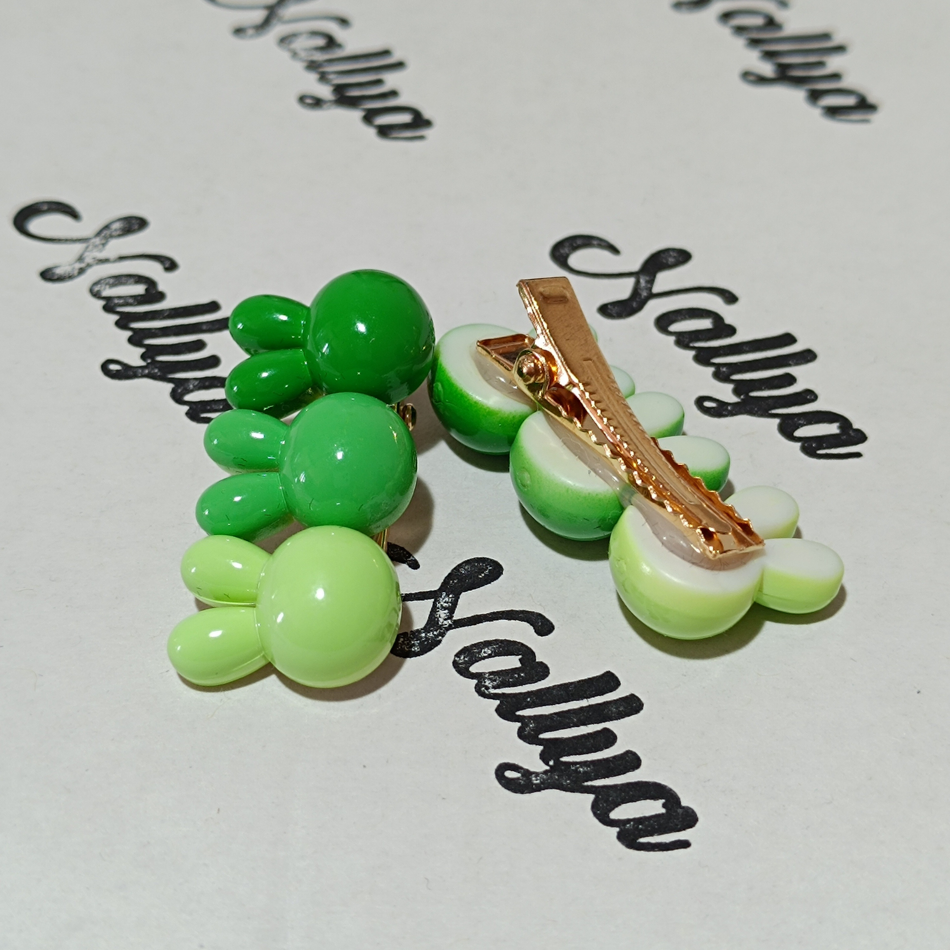1 paire de barrettes verte lapin