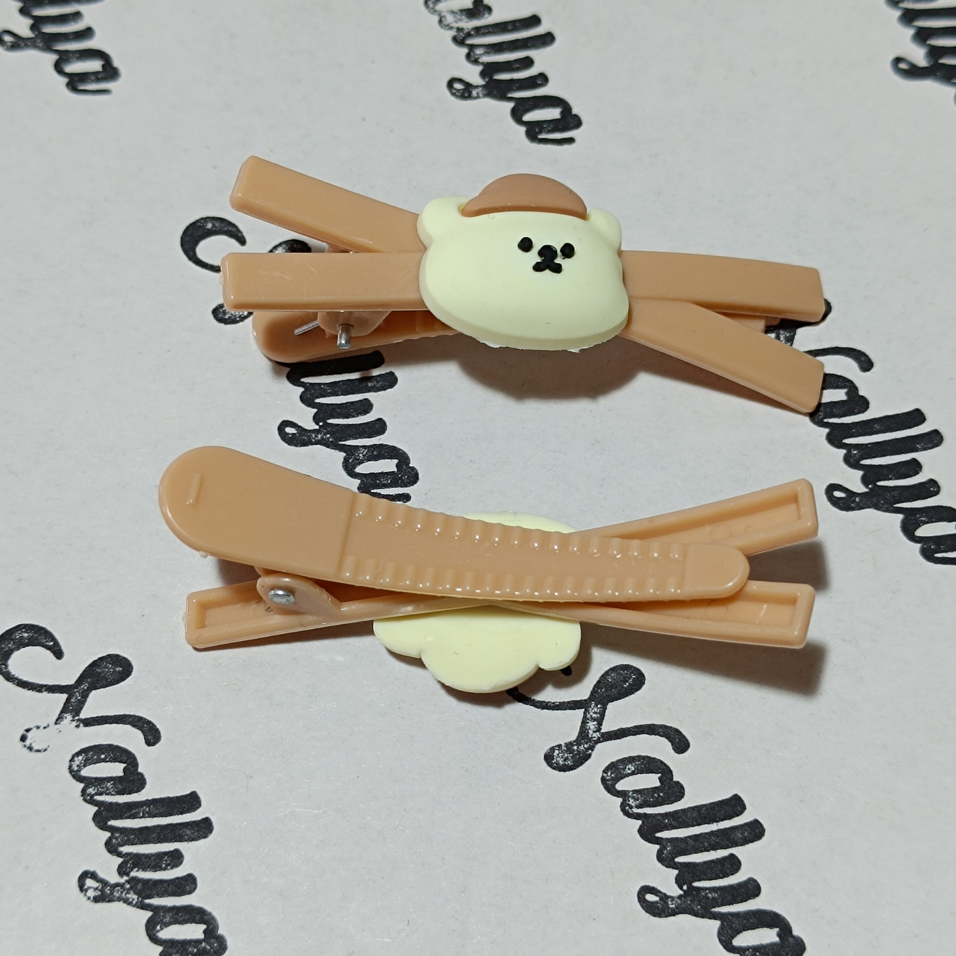 1 paire de barrettes marron ourson