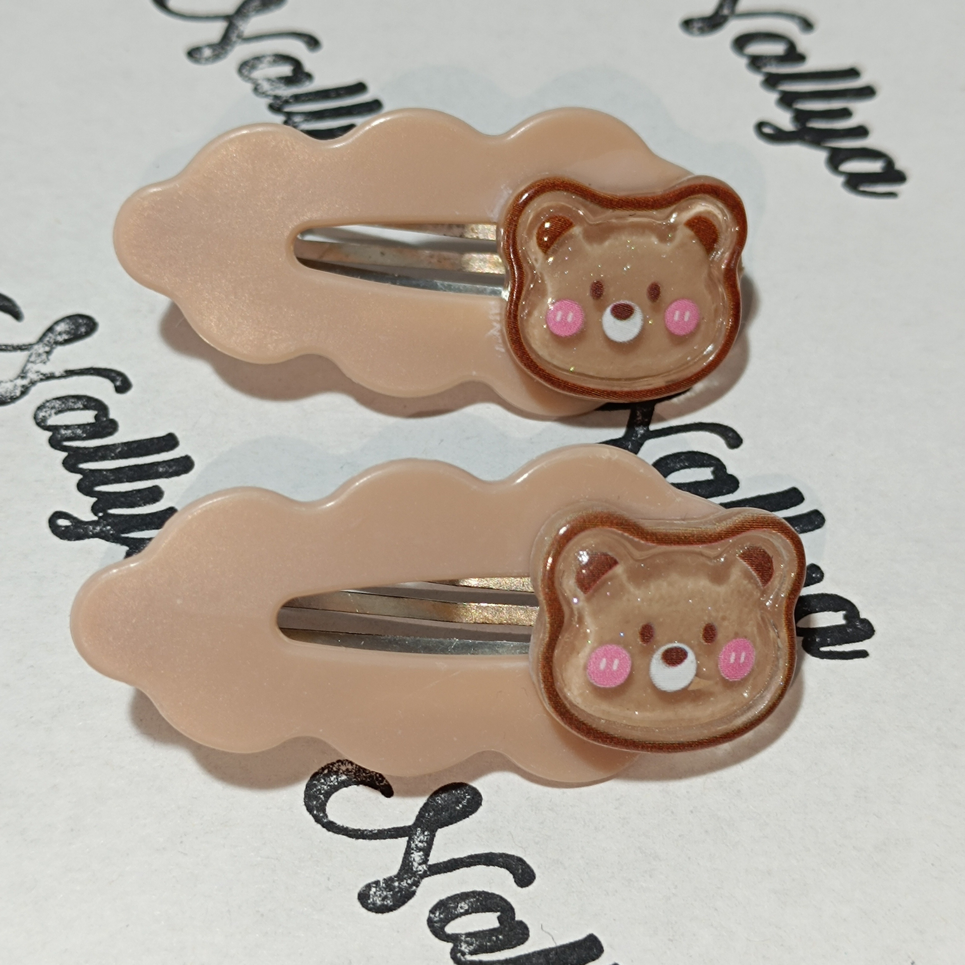1 paire de barrettes marron ourson