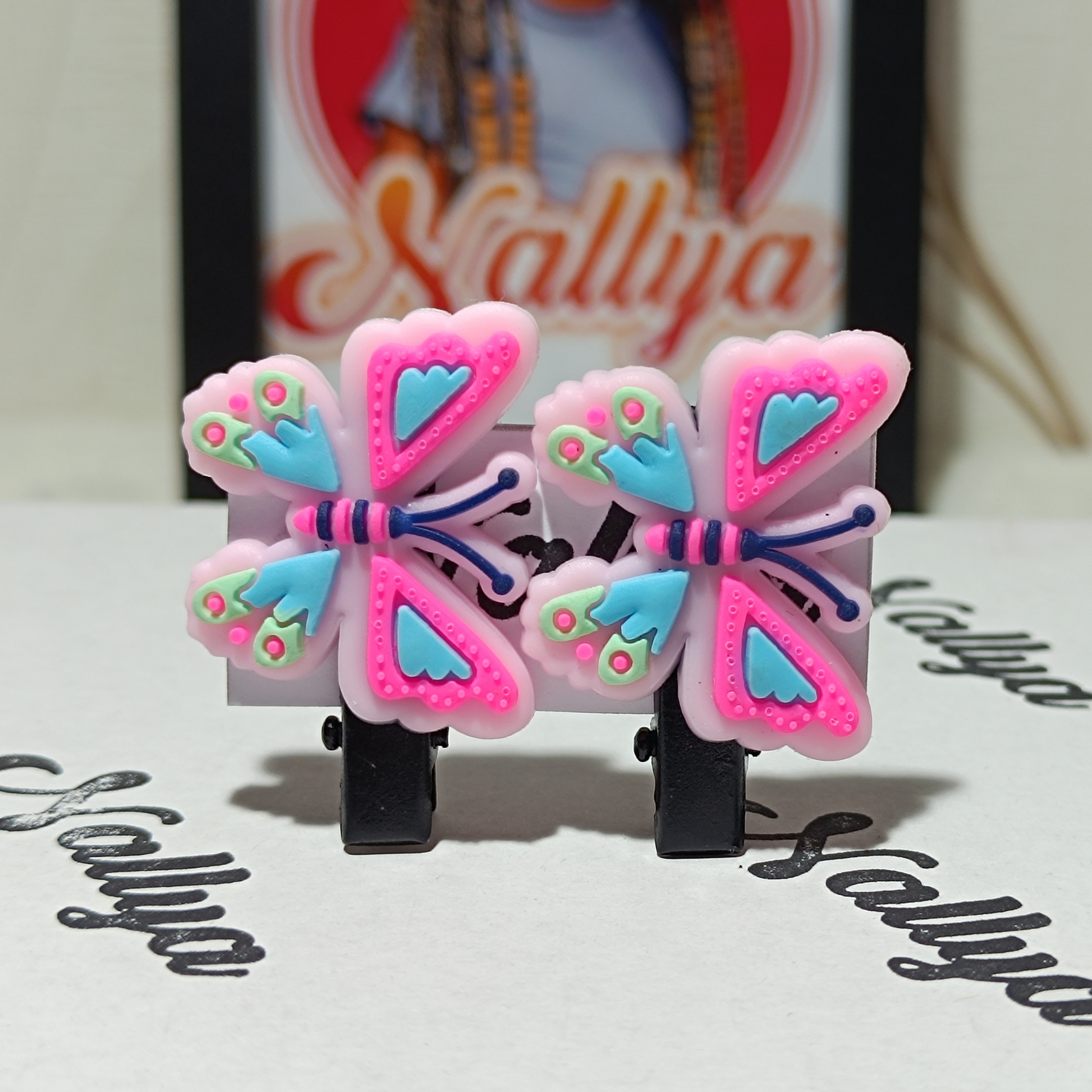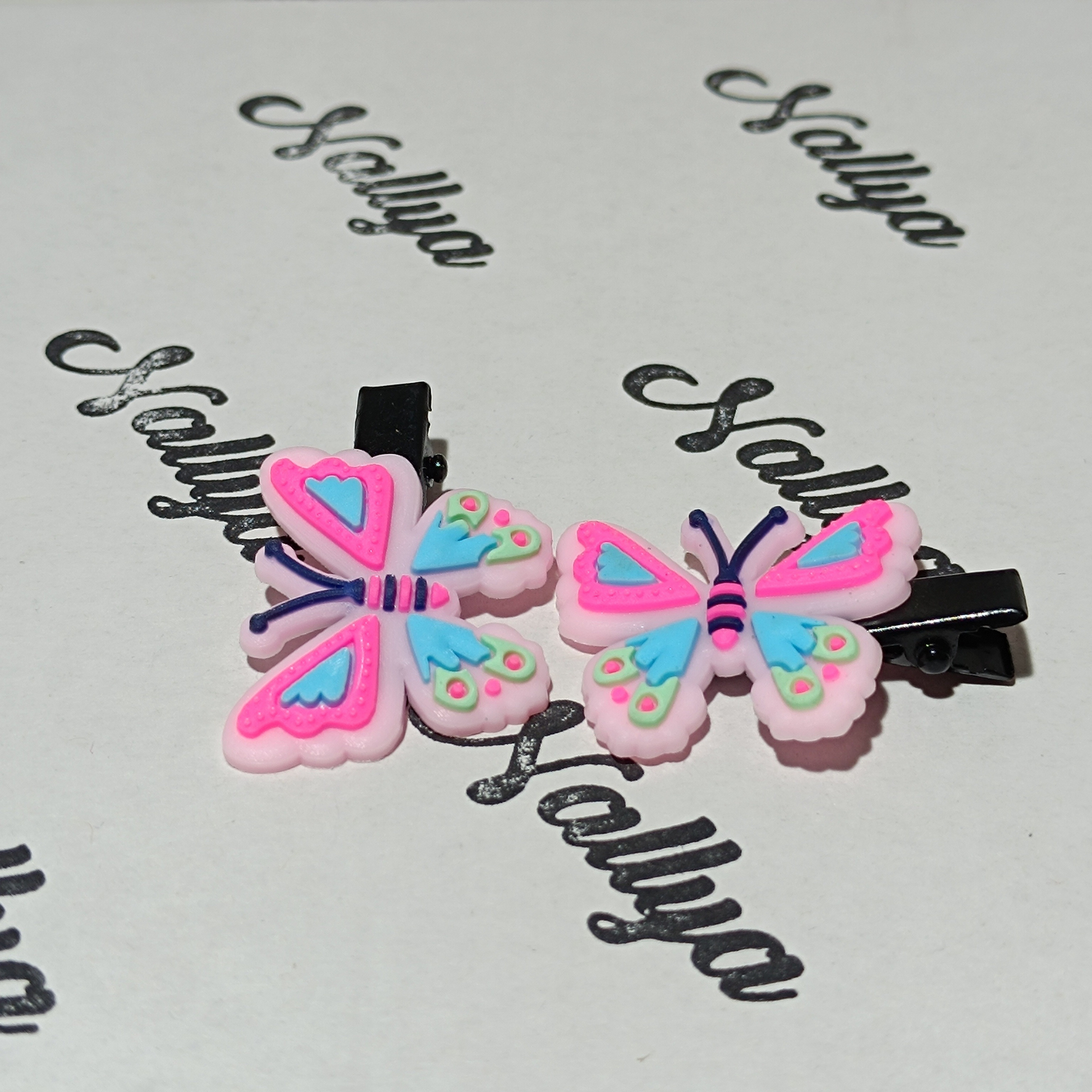 1 paire de barrette en forme de papillon rose et bleu